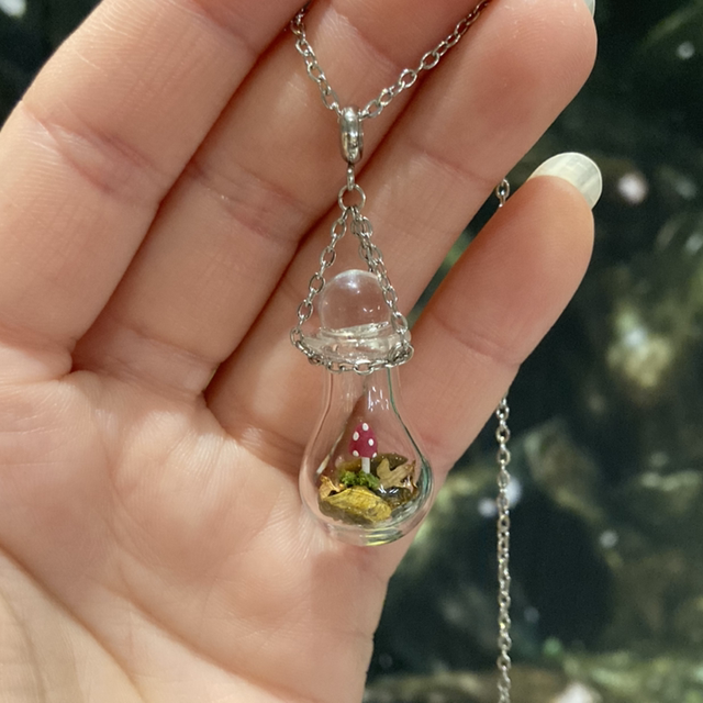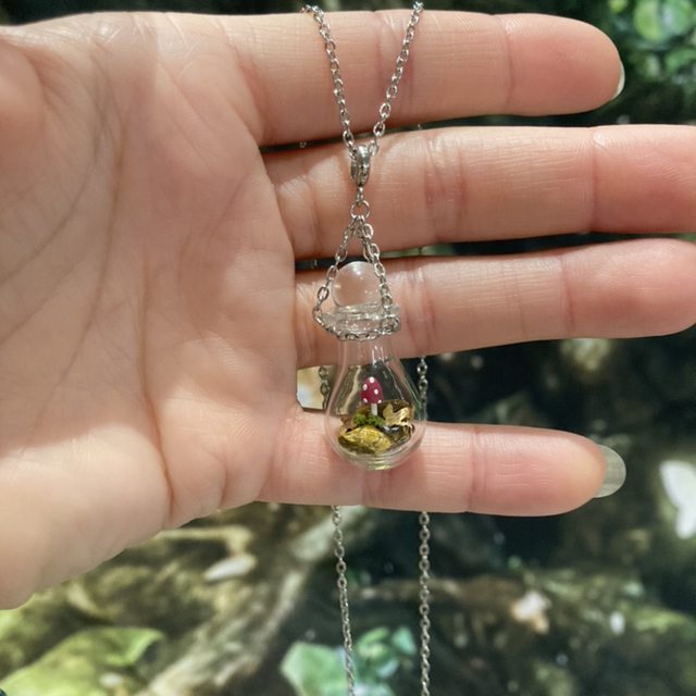 Ce bijou est un trésor unique qui allie la magie et l'élégance de la nature à la beauté mystique des champignons et des merveilles féeriques. Véritable bulle de verre poétique, magique, féerique.
